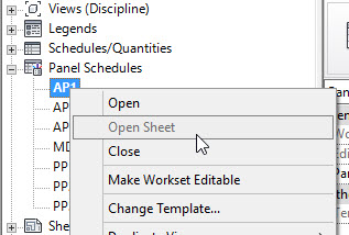 I realize it probably isn’t easy or perhaps even possible to segregate this schedule-ness from Panel Schedules but I would have found it very handy to be able to use the Open Sheet concept for them several times today. In this instance it would have been faster than navigating through a very long list of sheets. I suppose it is also possible that some firms do need to be able to put Panel Schedules on more than one sheet, in which case…bummer for me and…