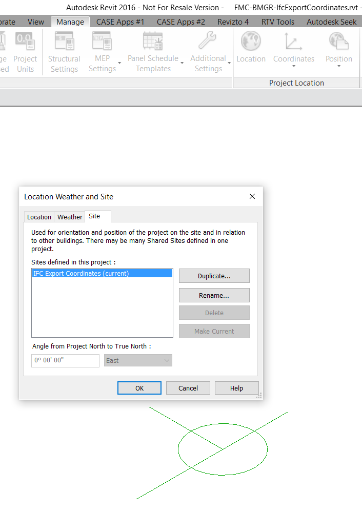 6) Open Location dialog in Revit, under Site you will notice a new “Site”. Set it current with the Make Current button:
