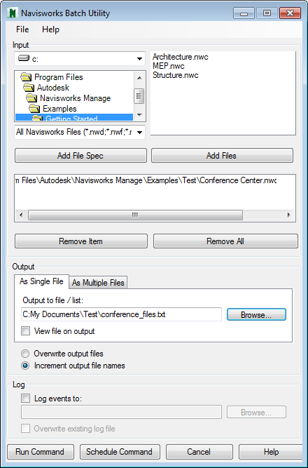 - In the Autodesk Navisworks Batch Utility dialog box, click the Run Command button.