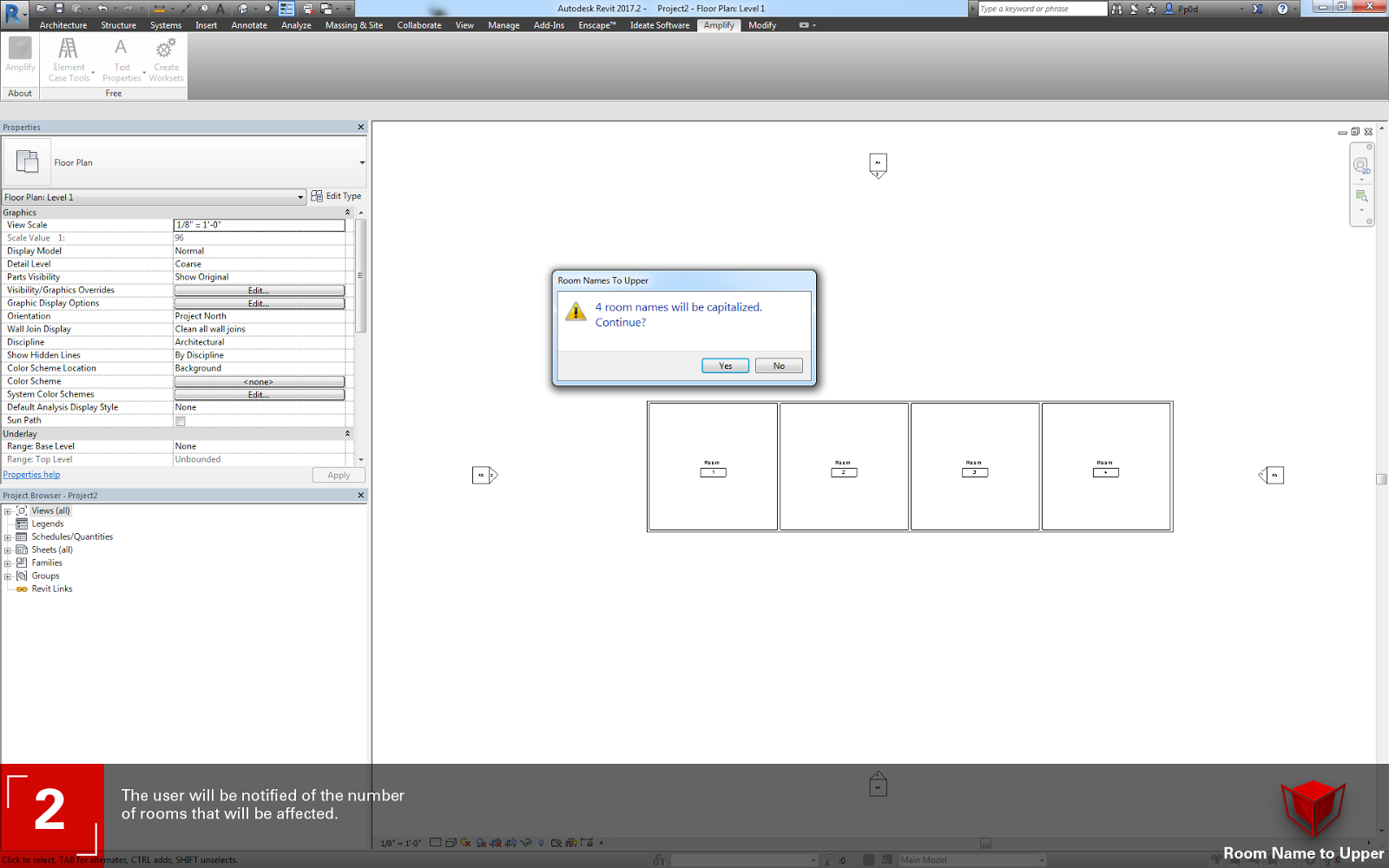 The Amplify Element Case Tool offers the ability to auto-capitalize Autodesk® Revit® text globally. This version currently supports Room Names, View Titles on Sheets, and Sheet Names. Save time and avoid the tedious process of ensuring your text is capitalized.