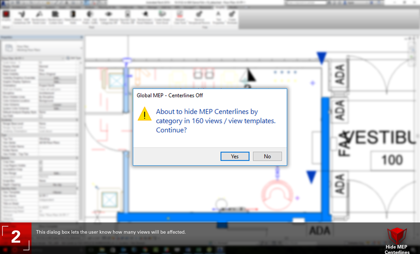 This add-in will go through all views and view templates in your Autodesk® Revit® project and turn off all MEP component centerlines.