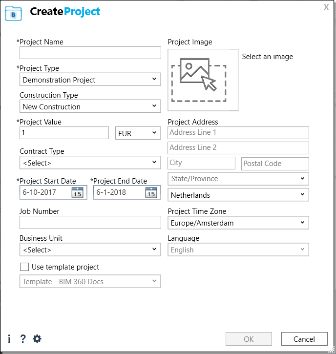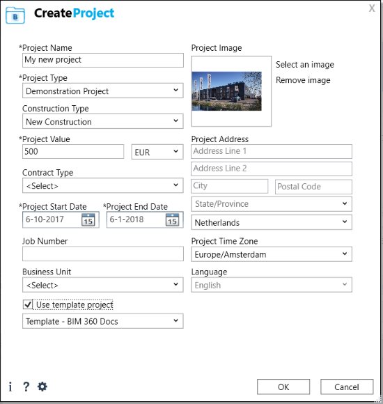 Create a project on Autodesk® BIM360® Docs, add an image and be able to add folders from a template project