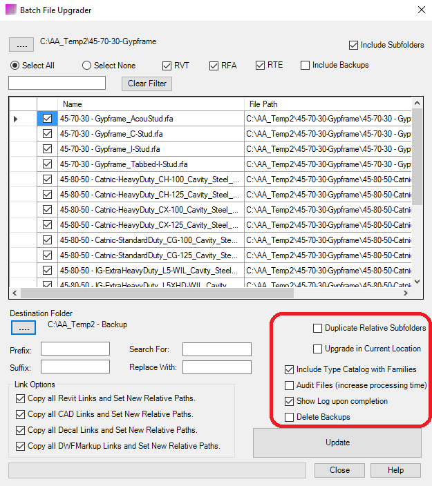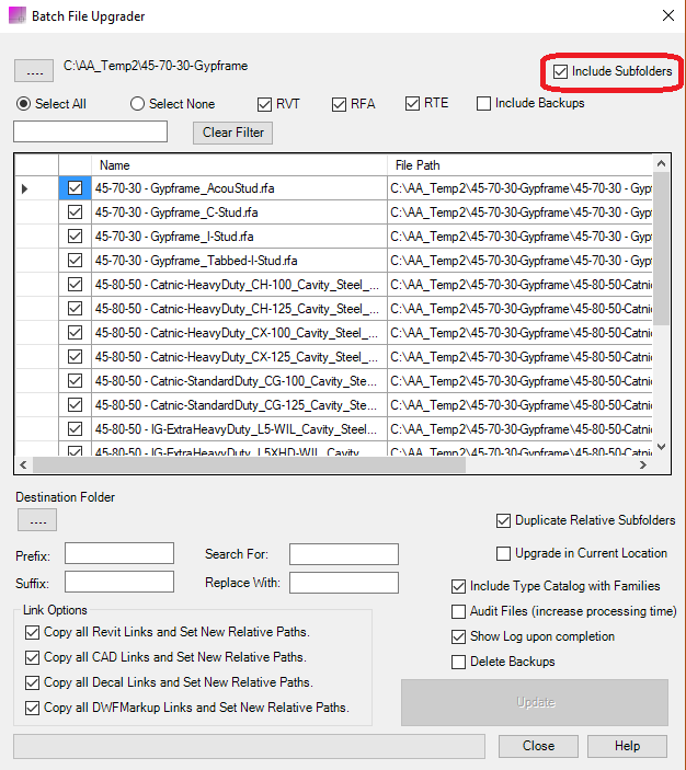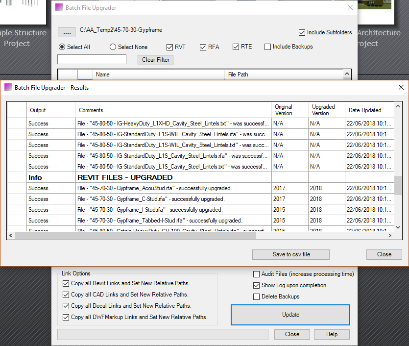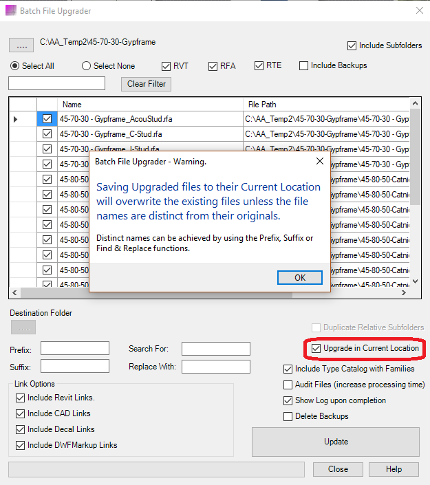 Using this app, you can upgrade multiple Autodesk® Revit® Projects (*.rvt), Templates (*.rte) or Families (*.rfa) to the most current version. Excludes Workshared Projects.
