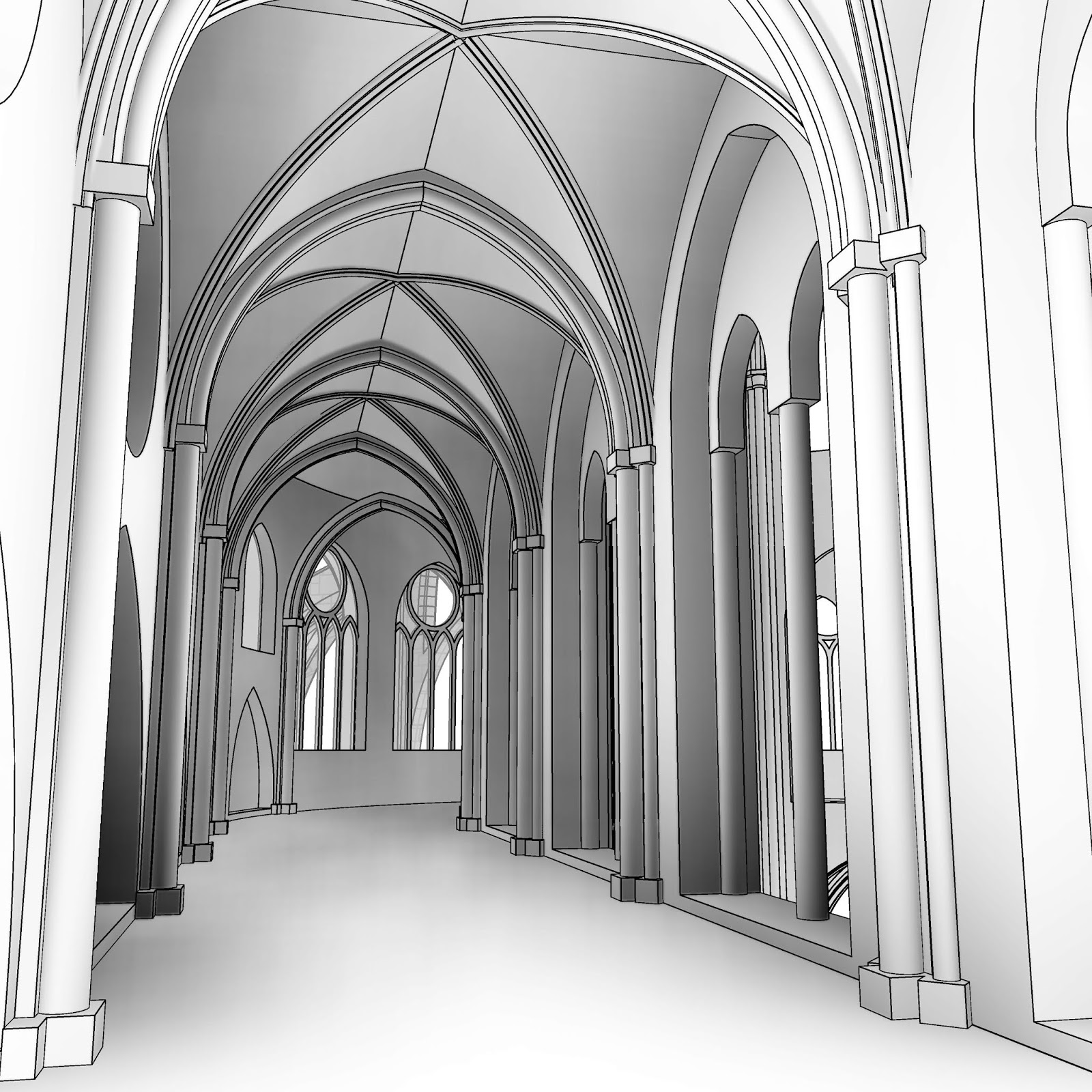 The triforium galleries on the chancel side (east of the crossing) Circular windows above ogival recesses on the outside. These were already in place along the sides (N&S) but not where the galleries turn the corner up against the transepts. This reveals the need to omit the lower arches on the last flying buttresses, which lie in the plane of the outer wall. Maybe a visibility switch would do the trick.