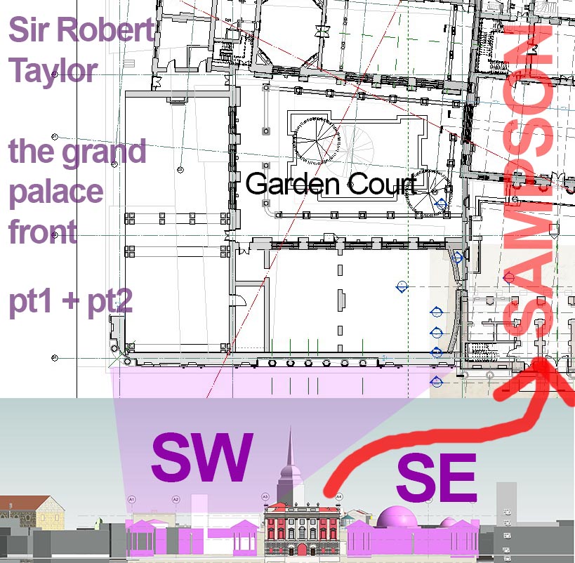 Taylor built two new wings, one to the East and later on its symmetrical twin, creating a grand Palace front facing Threadneedle Street and spanning the entire city block from Princes St to Bartholomew Way.  Quite a stroke of luck, (by the way) that Sampson’s Bank was so well placed at the centre of a city block.