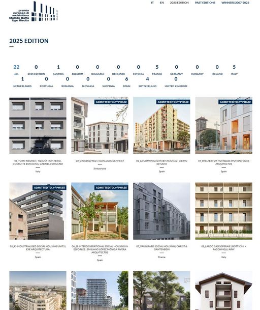 The Matilde Baffa Ugo Rivolta European Architecture Award, announced every two years by the Order of Architects of Milan and now in its tenth edition, is aimed at the best European social housing projects and is a reference point for the debate in this area, highlighting the importance of the overall quality of the constructed environment and the sustainability of architectural design.