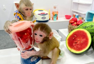 Bim Bim harvest watermelon to make juice for Baby monkey